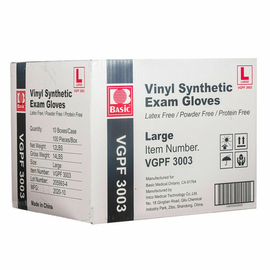 BASIC Vinyl Synthetic Exam Gloves Clear Powder Free 1000/Case