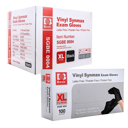 BASIC Vinyl Synmax Exam Gloves Black Powder Free 1000/Case