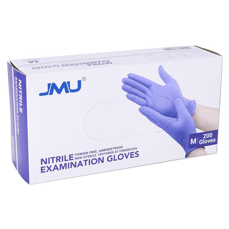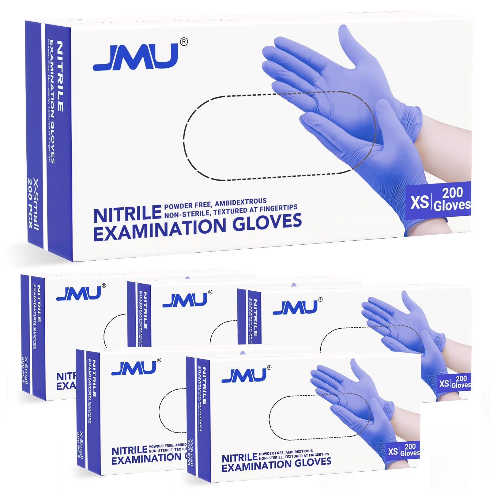 JMU Disposable Medical Nitrile Exam Gloves 3g, Violet Blue, XS/S/M/L, 200Pcs/Box 6Boxes/Case, Finger Texture, Powder Free, Non-sterile, Ambidextrous Design Textured Fingertip Grip Beaded Cuffs Not Easy to Tear Softness and Wearing Fitness.