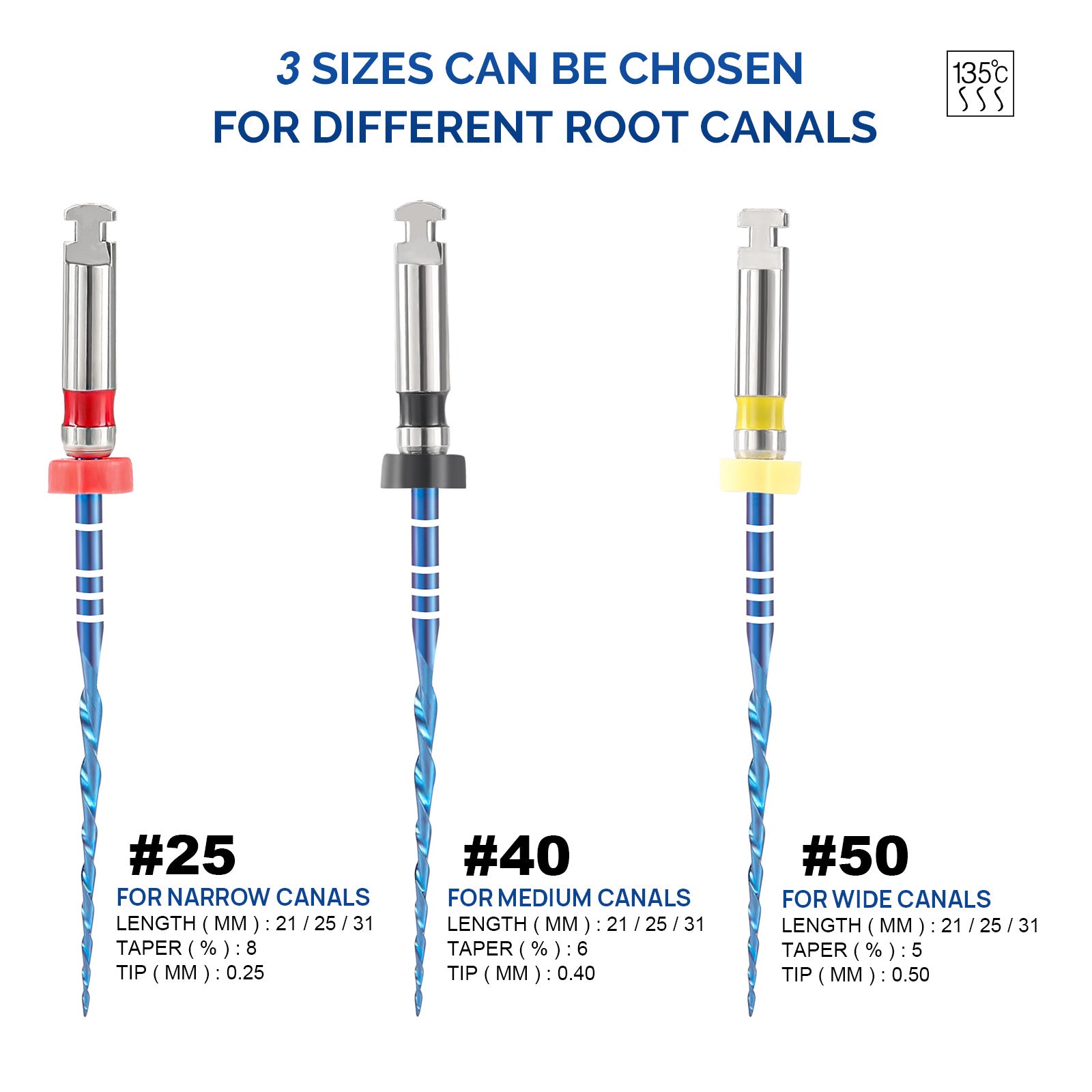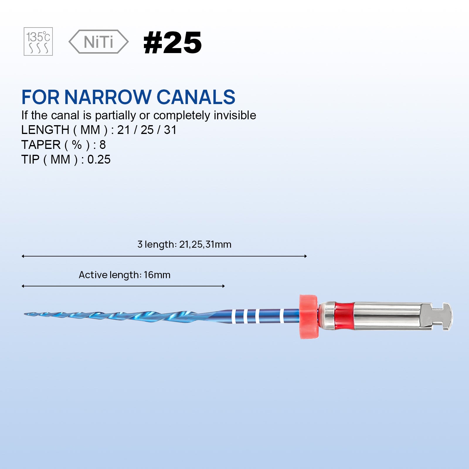 JMU NITI ROTARY FILES, RC-B ONLY FILES, #25(21mm), Sterilized Packing, 6pcs/Pk, #ONLY ONE FILE (BLUE)
