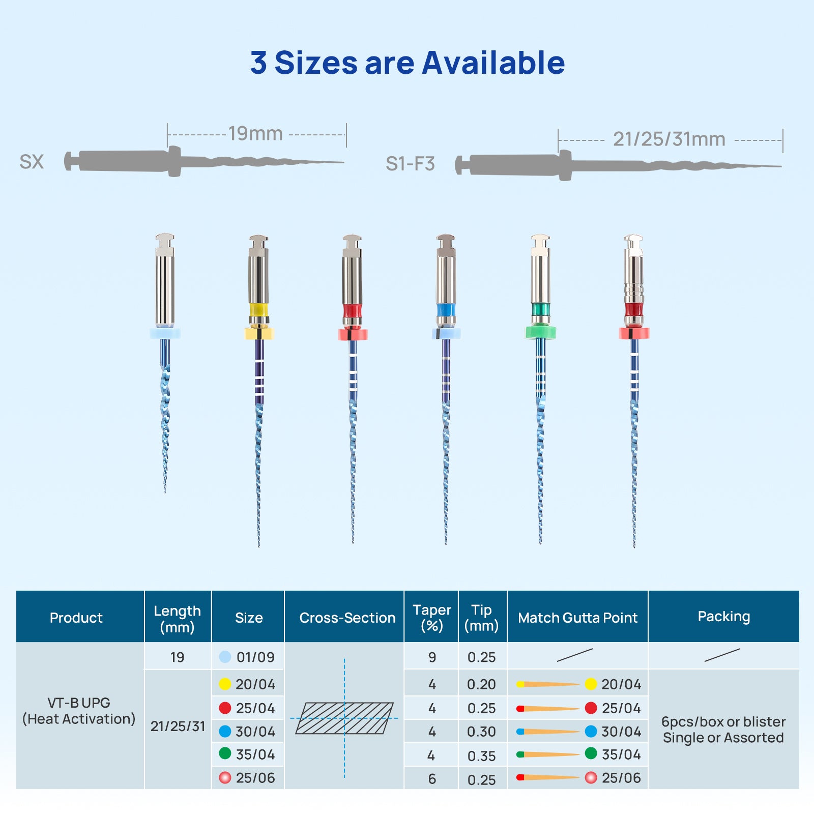JMU NITI ROTARY FILES, VT-B UPG FILES, Sterilized Packing, 6pcs/Pk, #PRO-FLEXI FILES (BLUE)